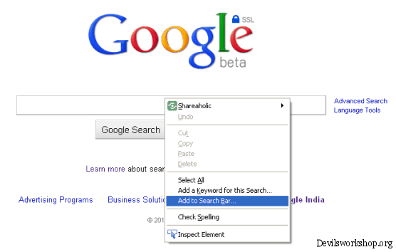 | How to: Use Google SSL Search as Default Search Engine in Chrome, Firefox and Internet Explorer Posted: 22 May 2010 08:00 AM PDT Google made it clear to the world that it cares for user security and privacy, by introducing SSL version of its search engine yesterday. It will prevent third parties from intercepting search terms and search results, as a result of the encrypted connection. Currently it is in its beta stage, but one can still make full use of it by using https every-time you perform a search on Google. And if you are feeling a bit lazy, you can follow the steps below, to make Google SSL as your default search engine on Firefox, Chrome or Internet Explorer. With this, every time you perform a search through browser search box, it will be encrypted. Here we go: Firefox1. Download and install Add To Search Bar addon, and restart your firefox. 2. Head over to https://www.google.com. Right-click anywhere on the search box and click on Add to search bar… in the menu. 3. A new window will pop-up which will help you create new search engine provider for your search box. Assign it a name and keyword, and click ok to save. 4. Your new search engine has been created. Make it your default search engine by moving it to top spot in Manage search engines… window. 5. After making it your default search engine, an encrypted version of google search is used everytime you perform search with it. Chrome1. Go to “Settings” on top-right corner of Chrome browser and click on “Options“. 2. Click on the “Manage” button next to the list of search engines, add a new search engine provider by inserting “Google Secure Search” in place of name (you can add any name) and in place of URL, add: https://www.google.com/searchq=%s 3. Click OK and make it the default search engine. Internet Explorer1. Head over to this web-page to add you own search provider. 2. Add the following details: URL: https://www.google.com/search?q=TEST Name: “Any name” 3. Click on Install search provider. Cheap Domain name | Dreamhost Wp Hosting 50$ discount This Post How to: Use Google SSL Search as Default Search Engine in Chrome, Firefox and Internet Explorer is Published on Devils Workshop .Related posts: |