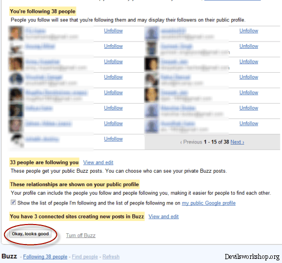 | Is Google Buzz admitting that it goofed up the first time? Posted: 06 Apr 2010 02:05 AM PDT Google Buzz has been covered over many blogs with many web articles being published on various tools and strategies to be employed on using Buzz. We at Devils’ Workshop have also had many posts on Google Buzz about its general updates to its settings to desktop applications for using Buzz. A few times I have even wondered aloud if Google was better of buying Twitter instead of coming up with Buzz. Now the latest on the Google Buzz page is a new settings update which prompt the user by default to confirm if the settings they have on Google Buzz are fine with them. Below is a screen shot of how it looked for my Buzz profile. I think Buzz has got a lot of bad publicity for it’s settings regarding privacy and this is the first instance when Google Buzz admits it got things wrong. A lot of people did not like their email contacts becoming Buzz contacts and that was where Buzz started to get it wrong. Having your email contacts out in the open was not desirable for many who might be using a single Gmail account for professional and personal work. I think it was fair to wonder why did Buzz never stay in Beta and was released with such haste? I think Google is now realizing its mistake with Google Buzz and has created this new update of confirming Buzz settings as repair work. What do you think? Do you think this is an admission of Google saying they goofed up? Do drop in your comments. Grab .com domain name from Ilovethisdomain. This Post Is Google Buzz admitting that it goofed up the first time? is Published on Devils Workshop .Related posts: |