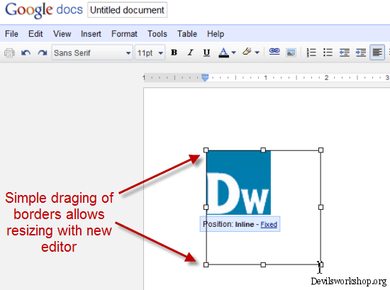 Now any new text document will be created with the new version of document editor. How to re-size images which are inline?Now once you create a new document and insert an image within the text, you can just click on it to get the options to re-size the image to suit your needs. This can be done automatically and the text around the image will adjust automatically pretty much like any other word processor. (see image below) I liked the New editor layout for Google Docs so much that I do not think I will need to use MS Word again. Also Google Docs are very easy to share and Docs.com option of sharing MS Office documents with Facebook friends is still not revealed completely so for the moment Google is getting it right by sticking to getting a friendlier format rather than making it too complex. Do let me know your view on Google Docs new editor and features and drop in your comments. Cheap Domain name | Dreamhost Wp Hosting 50$ discount This Post Get New Google Docs Editor and resize inline images is Published on Devils Workshop .Related posts: |