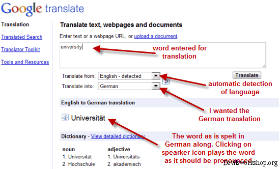 | Use Google translate to get correct pronunciations Posted: 12 May 2010 06:45 AM PDT Google Translation tools are probably the best ones around on the internet. I often use the Google translate tools to view websites in foreign languages. This is not always as the content translation is not always completely accurate. I have a passing interest in learning German and tried to look up ways to learn translated text. Google with its translation tools was obviously a favorite. But if you visit Google Translate landing page you can also hear the correct pronunciation of the text which is translated. About Google TranslateGoogle recently announced that they are adding a lot more languages to this voice translation which were not used. Hindi, French, German, Madarin, Macedonian and many other languages are included. This tool is a boon for people who travel and can just type in something in English and get to know the translation along with also how to pronounce that statement. If you are very familiar with a particular language you can also submit a better pronunciation to Google to make it better. Many times when you learn a new language you might be unsure of how a word exactly sounds. A small sound misplaced can mean something completely different than what you might have wanted to convey. This is why Google Translate can be quite handy to nail the pronunciation correctly. Cheap Domain name | Dreamhost Wp Hosting 50$ discount This Post Use Google translate to get correct pronunciations is Published on Devils Workshop .Related posts: |