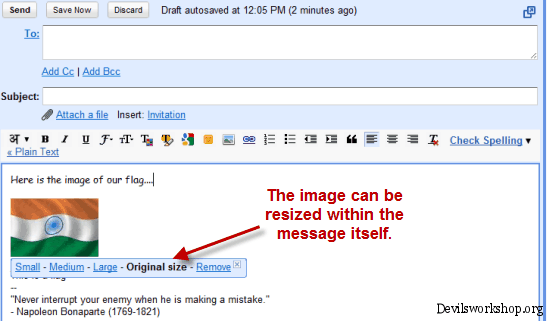 - Gmail allows drag and drop of images within message