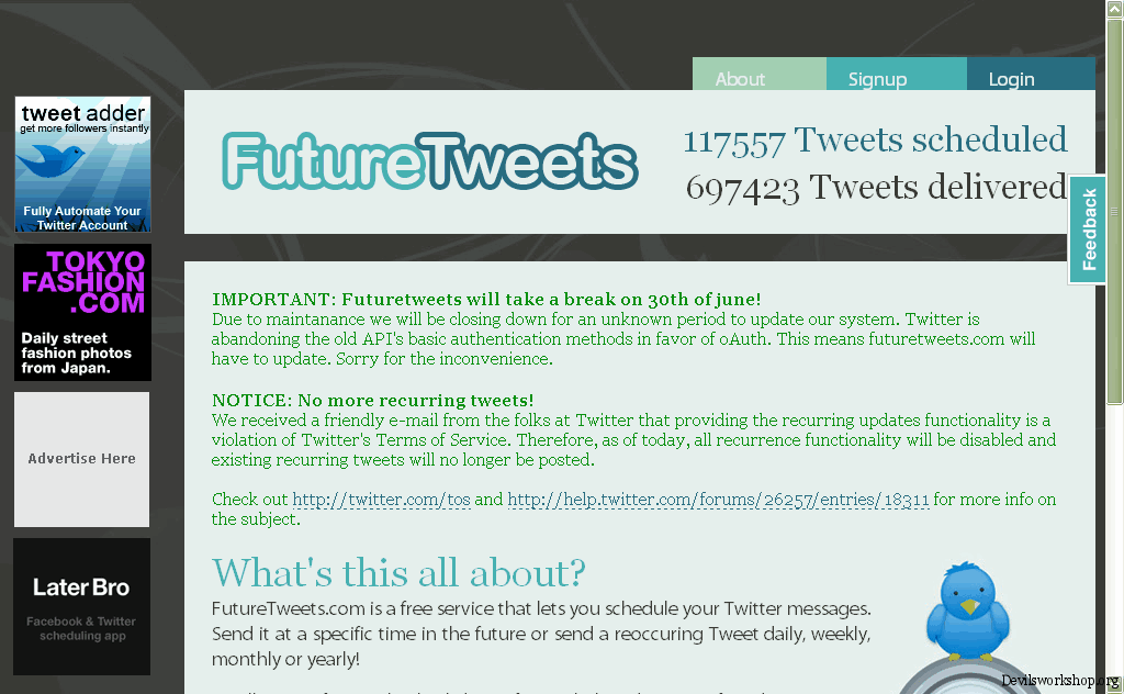 | 5 Great Twitter apps that you should know about Posted: 06 Jun 2010 04:27 AM PDT I have been using twitter for past six months. Its really a great serviceand it helps me to interact with my followers . Besides this , I am also great fan of some amazing twitter apps .Following are Twitter apps which i use regularly . #1. Splitweet:This application is used to combine multiple twitter profiles . We can post to an unlimited number of profiles from a central location. We can also track @replies and messages from the dashboard. #2. FutureTweetsThis application will automatically post messages at set times on your behalf. This is not for posting the same tweet over and over again. #3. TwitBlock:This application makes our twitter account free from spam. Big red block & report buttons help to keep Twitter clean. #4. TwerpscanThis application is useful for managing and viewing detailed data on your followers or the people following you. Clean tables are sortable by followers/following, follow ratio, # of tweets, etc. Bulk unfollow or block if needed is very useful. #5. Twiback:This application is useful for managing your Twitter background image and profile photo. Through this we can also change the background of twitter at mentioned time . Which Twitter App did you like the most? Drop your views in the comments. Cheap Domain name | Dreamhost Wp Hosting 50$ discount This Post 5 Great Twitter apps that you should know about is Published on Devils Workshop .Related posts: |