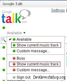 If you liked reading about this, you might like reading about show current music track in Gtalk while Playing songs in Winamp and Ways to auto reply in Gtalk with Predefined Messages. -- This Post Issue about Show Current Music track Gtalk with Windows media player and Winamp [Solved] is Published on Devils Workshop . |