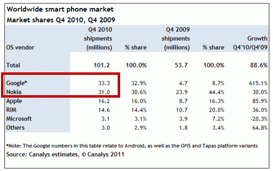 - Android overtakes Symbian by 1.9 million sales!